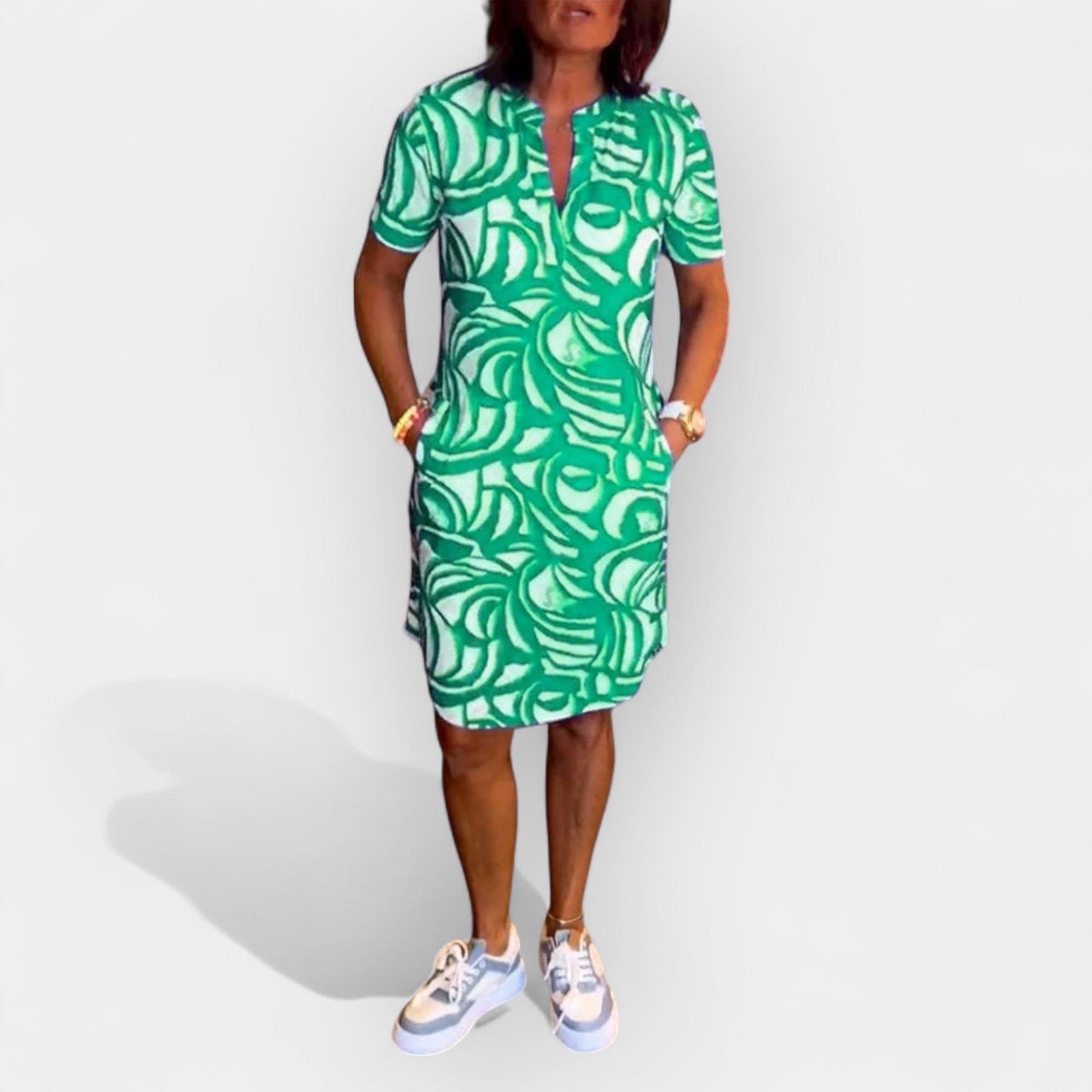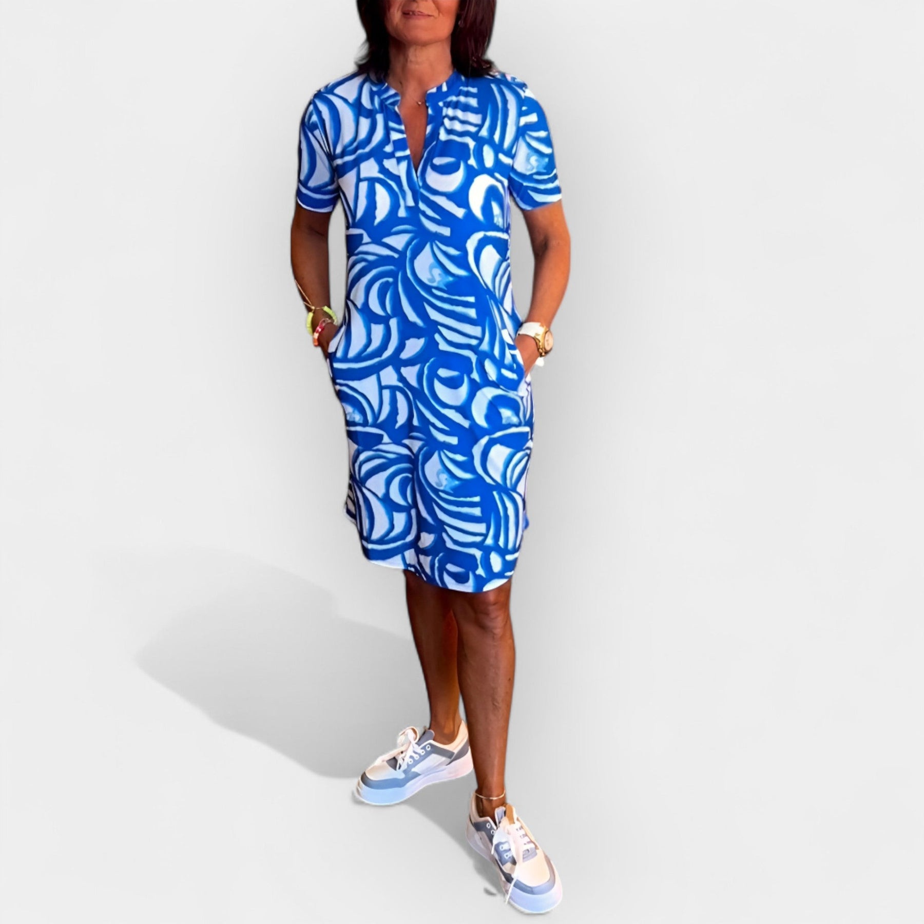 Haljina koja kombinuje stil i nespretnu udobnost za svaku priliku tokom dana. Njena meka tekstura i lagana silueta čine je idealnom za tople dane, dok poseban uzorak dodaje karakter i živahnost svakoj kombinaciji. Bilo da je reč o šetnji gradom ili popodnevnom sastanku, to je izbor koji ne zahteva razmišljanje.